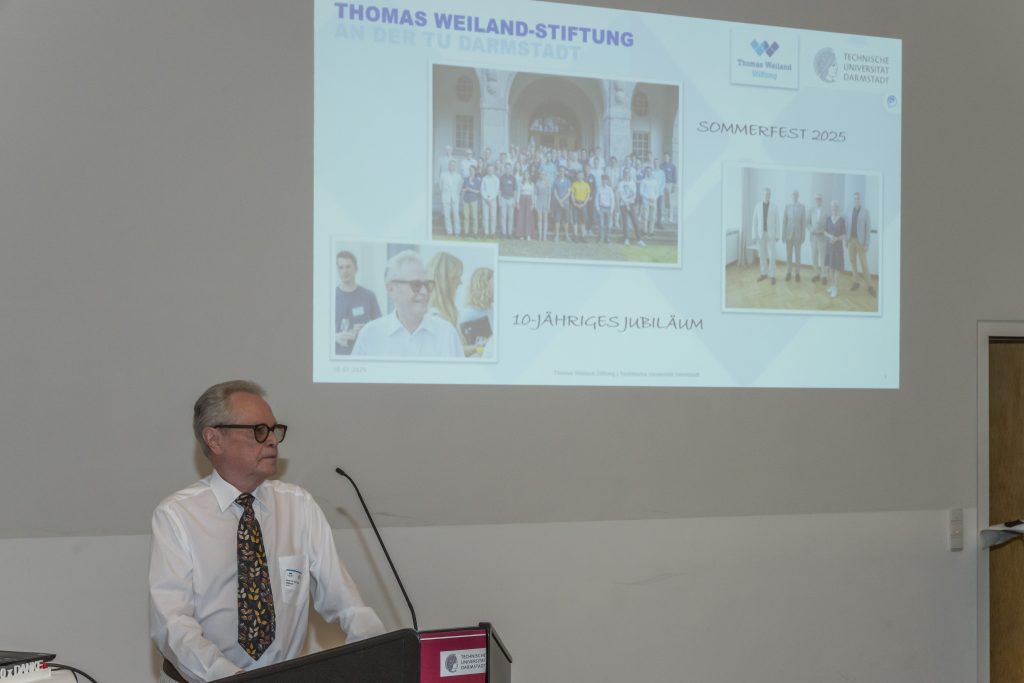 Gründe zu feiern gab es genug am Abend des 18. Juli. Nicht nur erhielten die neuen Stipendiatinnen und Stipendiaten der Stiftung ihre Stipendienurkunden. Darüber hinaus beging die Thomas Weiland-Stiftung an der TU Darmstadt auch das zehnjährige Jubiläum ihres Förderprogramms. Doch damit nicht genug: Eine weitere Stiftung, die „Thomas Weiland Wissenschaftsstiftung“ steht unmittelbar vor Aufnahme ihres deutschlandweiten Förderprogramms.